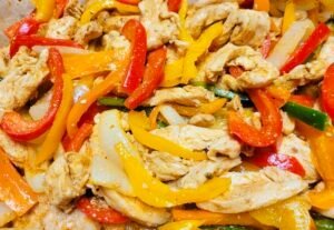 These easy chicken fajitas are made in the oven for a quick throw together meal after a busy day. A simple one dish recipe for easy clean up. Serve with homemade flour or corn tortillas. Also season with homemade taco seasoning.